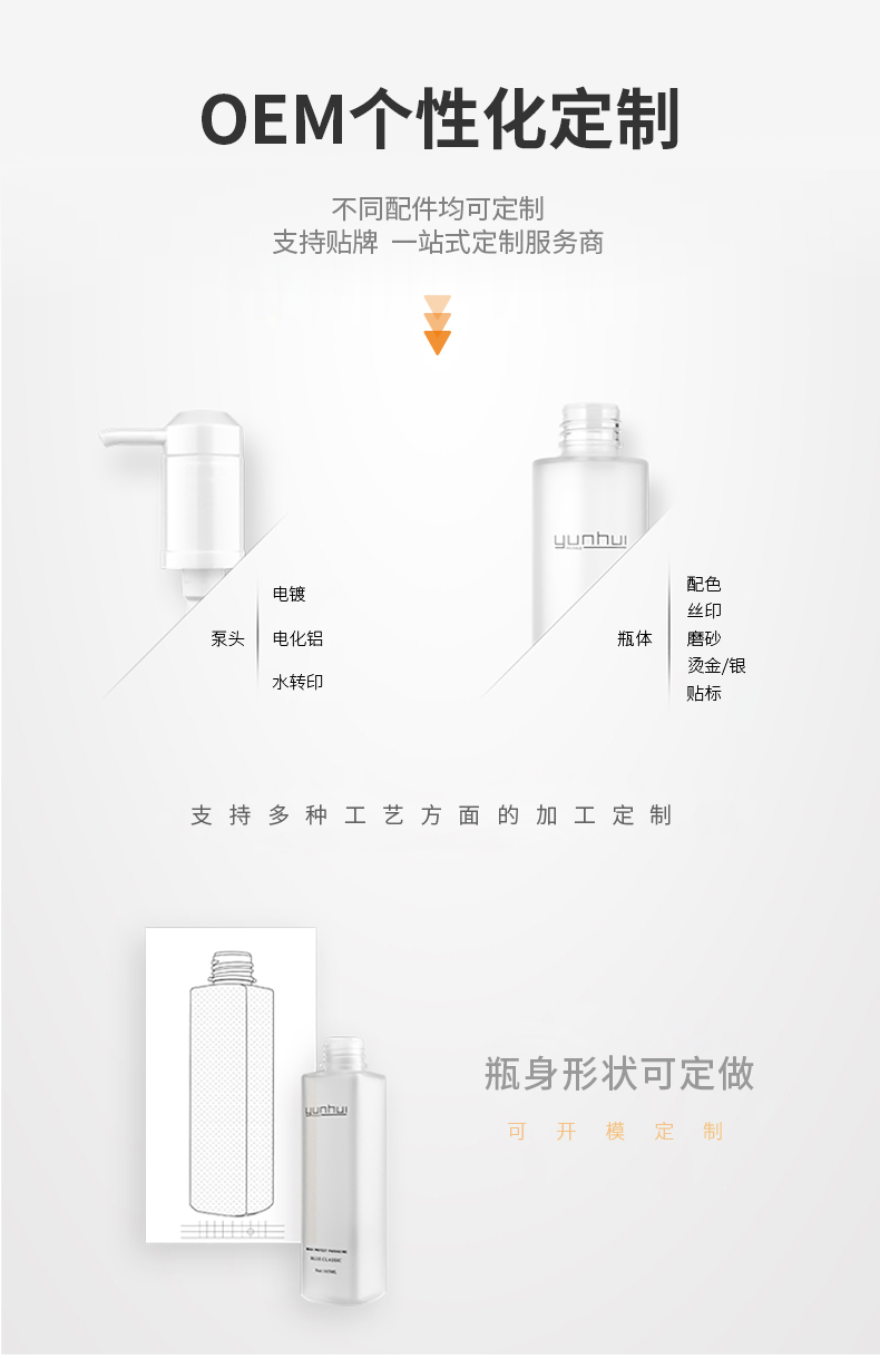 專業生產高端化妝品包裝瓶、洗護用品包裝瓶、日化品包裝瓶、護膚品包裝瓶的廠家